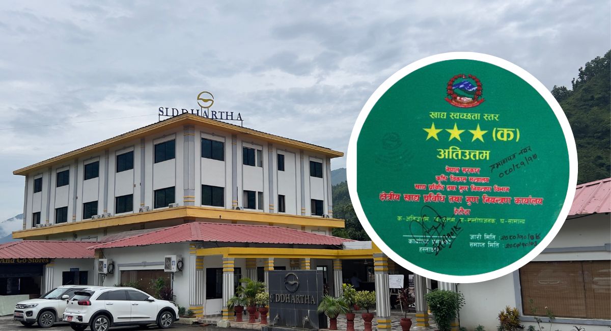 पृथ्वी राजमार्गको सिद्धार्थ रिभरसाइड रिसोर्टको खानालाई ‘अतिउत्तम वर्ग’ को प्रमाणीकरण