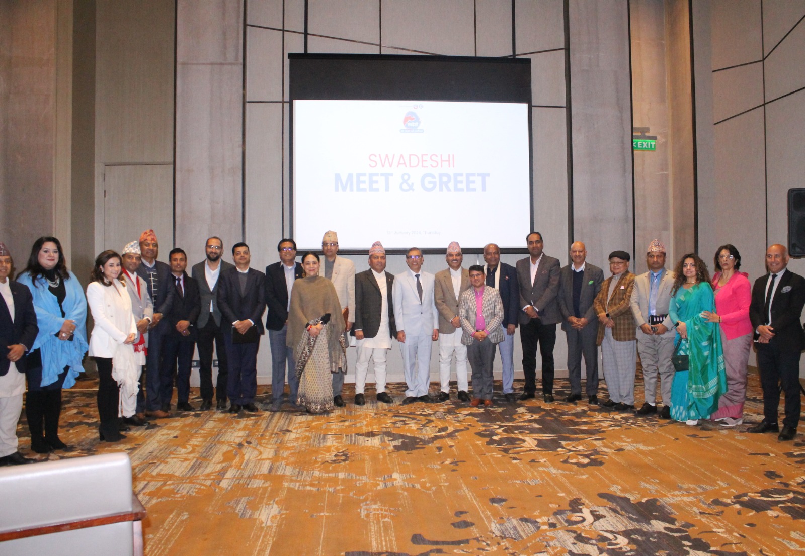नेपाल सरकारका मुख्यसचिव डा. बैकुण्ठ अर्याल, उद्योग, वाणिज्य तथा आपूर्ती मन्त्रालयका सचिवद्धय मुकुन्द प्रसाद निरौला, नारायण प्रसाद शर्मा दुवाडी लगायतको उपस्थितीमा विहिबार राजधानीमा आयोजित स्वदेशी मिट एण्ड ग्रीटमा स्वदेशी उद्योगहरुको प्रबद्र्धनका लागि लिइनुपर्ने नीतिगत विषयहरुमा छलफल गरिएको हो । कार्यक्रममा मेक इन नेपाल स्वदेशी अभियानले हालसम्म गरेका विभिन्न कार्यहरुका विषयमा जानकारी समेत गराइएको थियो ।