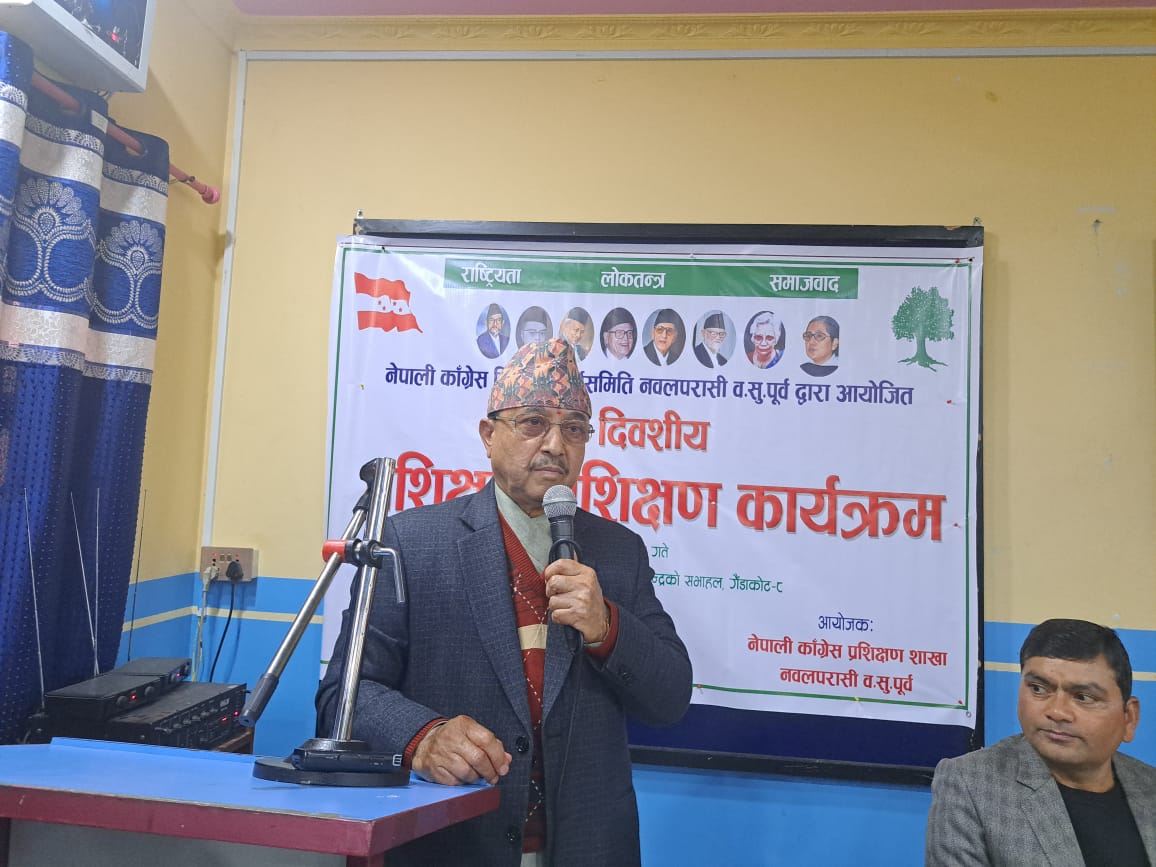 कांग्रेस जिल्ला कार्य समितिले नवलपरासीले आयोजना गरेको प्रशिक्षणका क्रममा उनले संविधान निर्माणदेखि कार्यान्वयनसम्म कांग्रेस नै नेतृत्व गरेको र सोही अनुसार काम भइरहेको बताए ।
