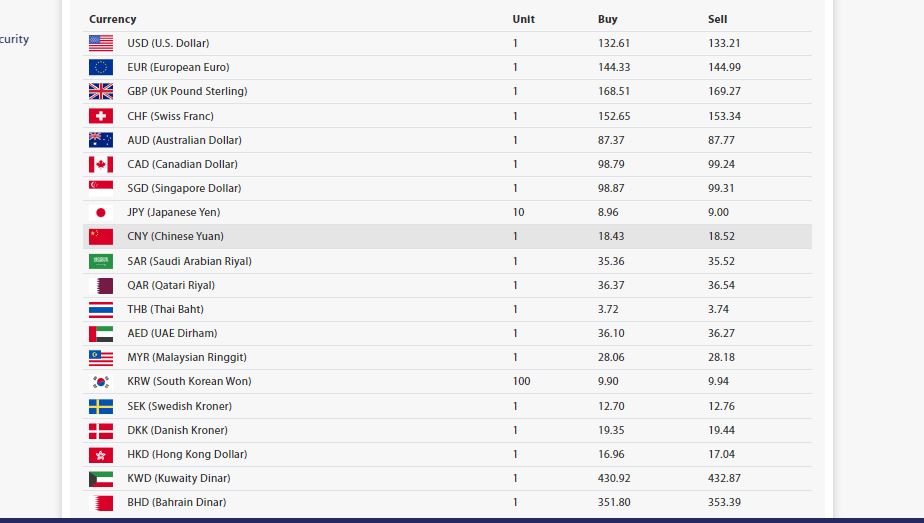 काठमाडौं । नेपाल राष्ट्र बैंकले आजका लागि विदेशी मुद्राको विनिमयदर तोकेको छ ।राष्ट्र बैंकका अनुसार, आज अमेरिकी डलर एकको खरिद दर १३२ रुपैयाँ ६१ पैसा र बिक्री दर १३३ रुपैयाँ २१ पैसा रहेको छ ।