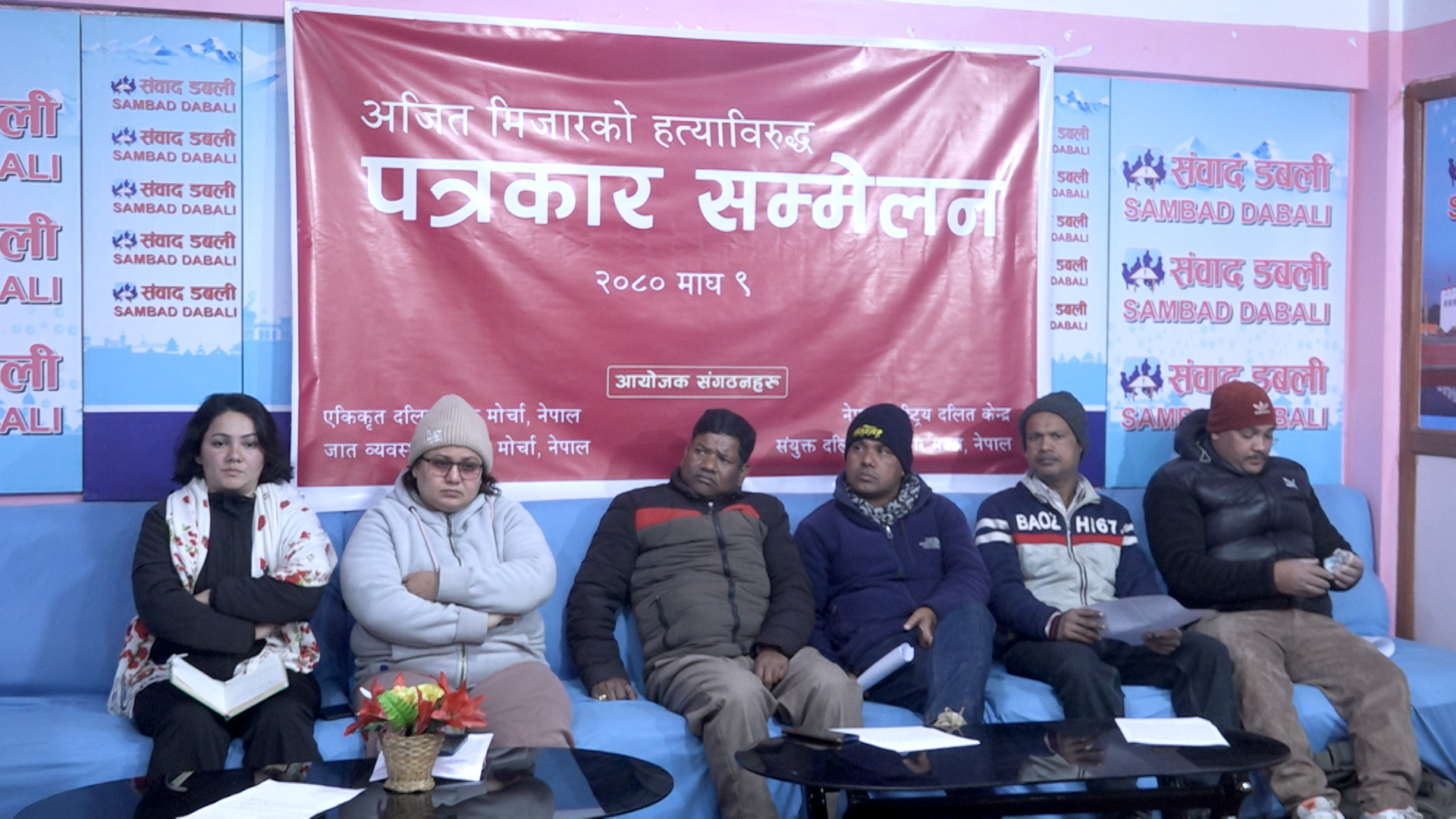 मंगलबार काठमाडौंमा पत्रकार सम्मेलन गर्दै एकीकृत दलित मुक्ति मोर्चा नेपाल, व्यवस्था उन्मुलन मोर्चा नेपाल, नेपाल राष्ट्रिय दलित केन्द्र र संयुक्त दलित अधिकार मञ्च नेपालले अजितको न्यायको लागि भन्दै प्रधानमन्त्री पुष्पकमल दाहाल प्रचण्डलाई ज्ञापन पत्र बुझाउनेदेखि आन्दोलन गर्ने कार्यक्रम घोषणा गरेका हुन ।