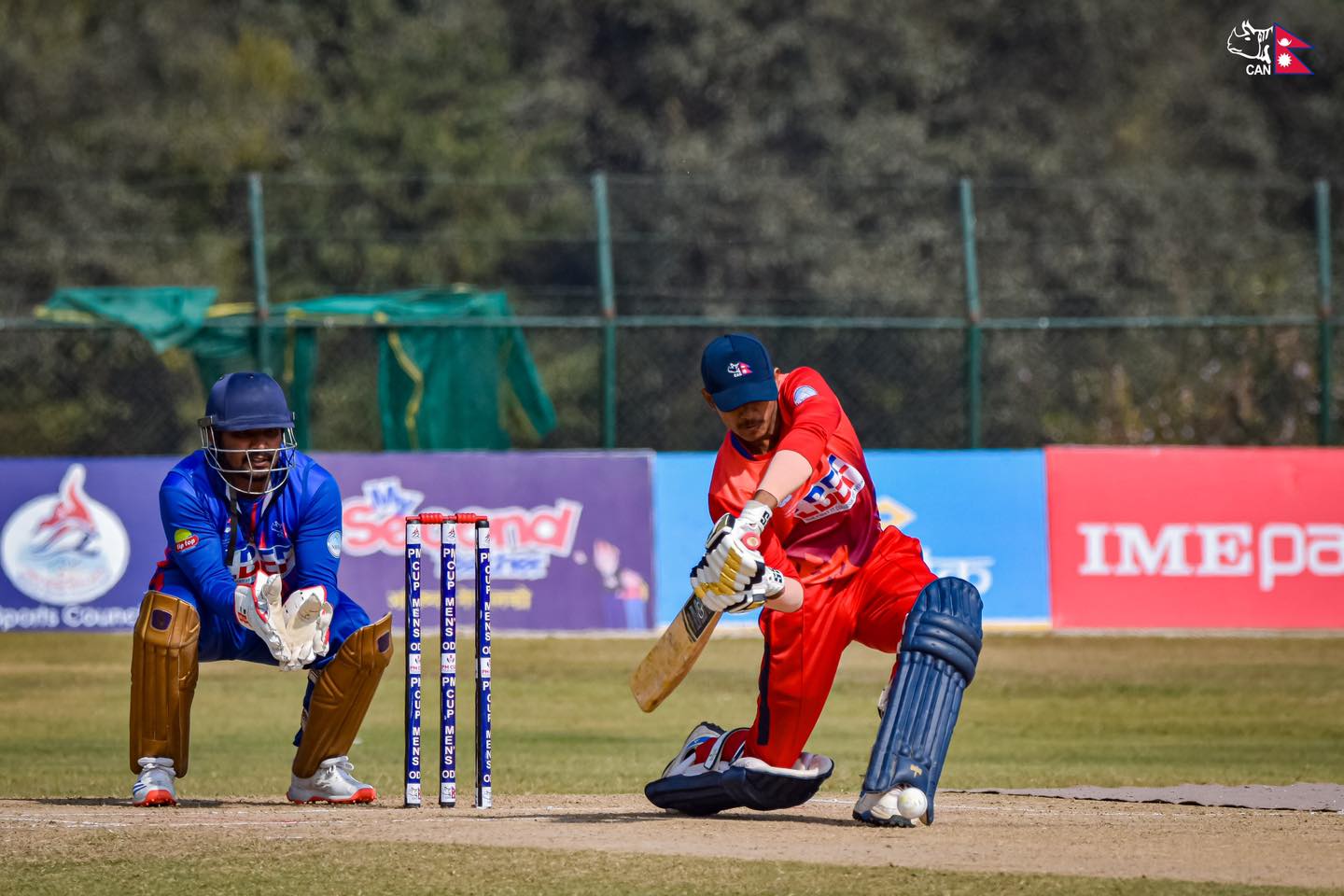 जवाफमा अर्जुन घर्तीले नटआउट ५० रनको अर्धशतकीय पारि खेले । उनले ४८ बल फेस गर्दा २ छक्का र ६ चौका प्रहार गरे ।