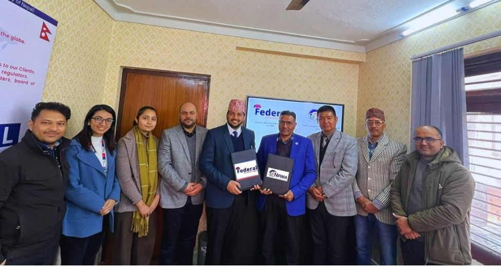काठमाडौं । फेडेरल रिइन्स्योरेन्स ब्रोकर्स लिमिटेड (एफआरबिएल) र नेपाल ईन्स्योरेन्स एण्ड रिस्क म्यानेजमेन्ट एसोसिएसन (निर्मा) बीच समझादारी भएको छ ।