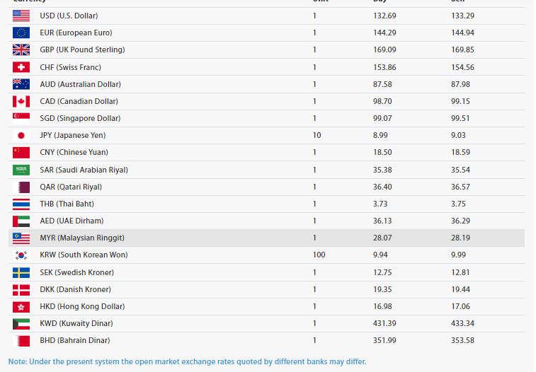 यस्तै, युरो एकको खरिद दर १४४ रुपैयाँ २९ पैसा र बिक्री दर १४४ रुपैयाँ ९४ पैसा रहेको छ ।त्यसैगरी, बेलायती पाउण्ड एकको खरिद दर १६९ रुपैयाँ ०९ पैसा र बिक्रीदर १६९ रुपैयाँ ८५ पैसा पुगेको छ । आज कतारी रियाल एकको खरिद दर ३६ रुपैयाँ ४० पैसा र बिक्री दर ३६ रुपैयाँ ५७ पैसा रहेको राष्ट्र बैंकले जनाएको छ ।