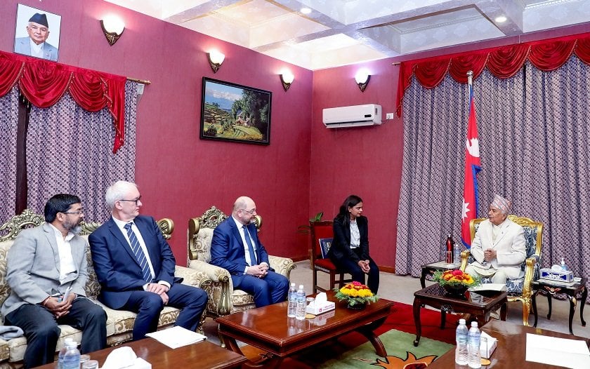काठमाडौं । राष्ट्रपति रामचन्द्र पौडेलसँग जर्मनीको फ्रेडरिक एबर्ट स्टिफटुङका ग्लोबल प्रेसिडेन्ट डा. मार्टिन सुल्जले शिष्टाचार भेट गरेका छन् ।