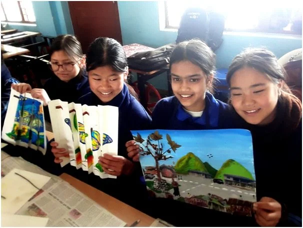 नजिकै बेञ्चमा रहेका अन्य विद्यार्थी पनि यसैगरी कला सृजनामा तल्लिन थिए । उनीहरुलाई सोनी राईलगायत समूहले ‘आर्ट’ सिकाइरहेका थिए ।