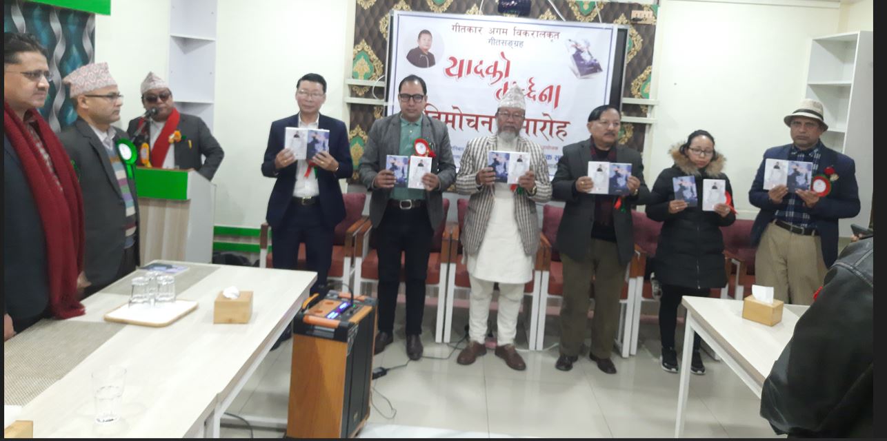 काठमाडौं । गीतकार अगम विकरालको पुस्तक ‘यादक मूर्च्छना’ सार्वजनिक भएको छ । रावासावा प्राज्ञिक समाज नेपालले शनिबार एक कार्यक्रमका बीच विकरालको कृति विमोचन भएको हो । नेपाल ललितकला प्रज्ञा प्रतिष्ठानका कुलपति नारदमणि हार्तम्छाली, विशिष्ट अतिथि नेपाल संगीत तथा नाट्य प्रज्ञा प्रतिष्ठानका उपकुलपति शम्भु राई, नेपाल प्रज्ञा प्रतिष्ठानका सदस्य सचिव डा. धनप्रसाद सुवेदी, रावासावा प्राज्ञिक समाज नेपालका अध्यक्ष बम बानियाँ लगायतले संयुक्तरुपमा कृतिको विमोचन गरे ।
