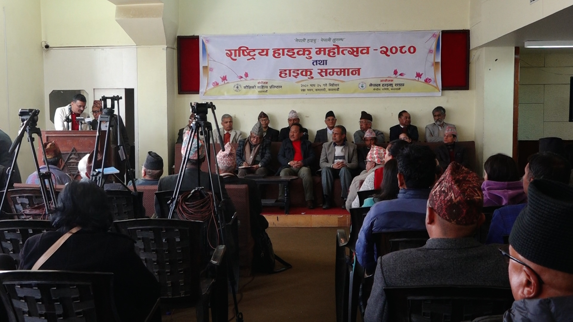 काठमाडौं । ‘नेपाली हाइकु:नेपाली सुगन्ध’ नारासहित बिहीबार राजधानीमा एकदिने राष्ट्रिय हाइकु महोत्सव २०८० गरिएको छ ।नेपाल हाइकु संघको आयोजनामा कमलादीस्थित प्रज्ञा भवनमा भएको महोत्सवमा सर्जकहरुले दर्जनौं हाइकु सुनाएका छन् ।