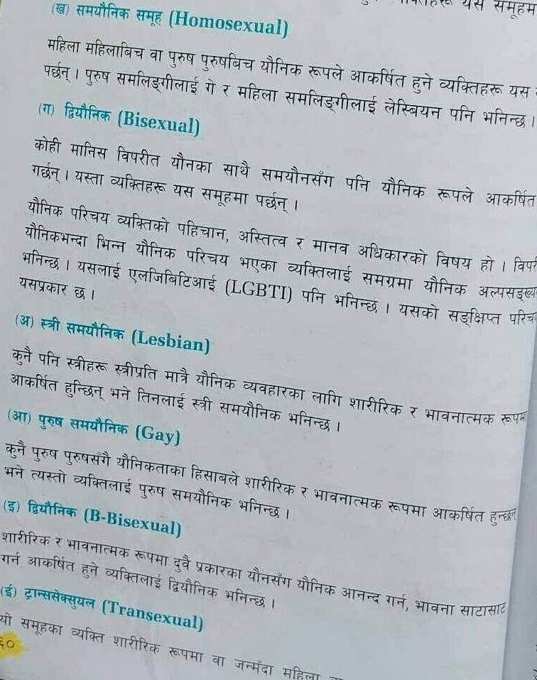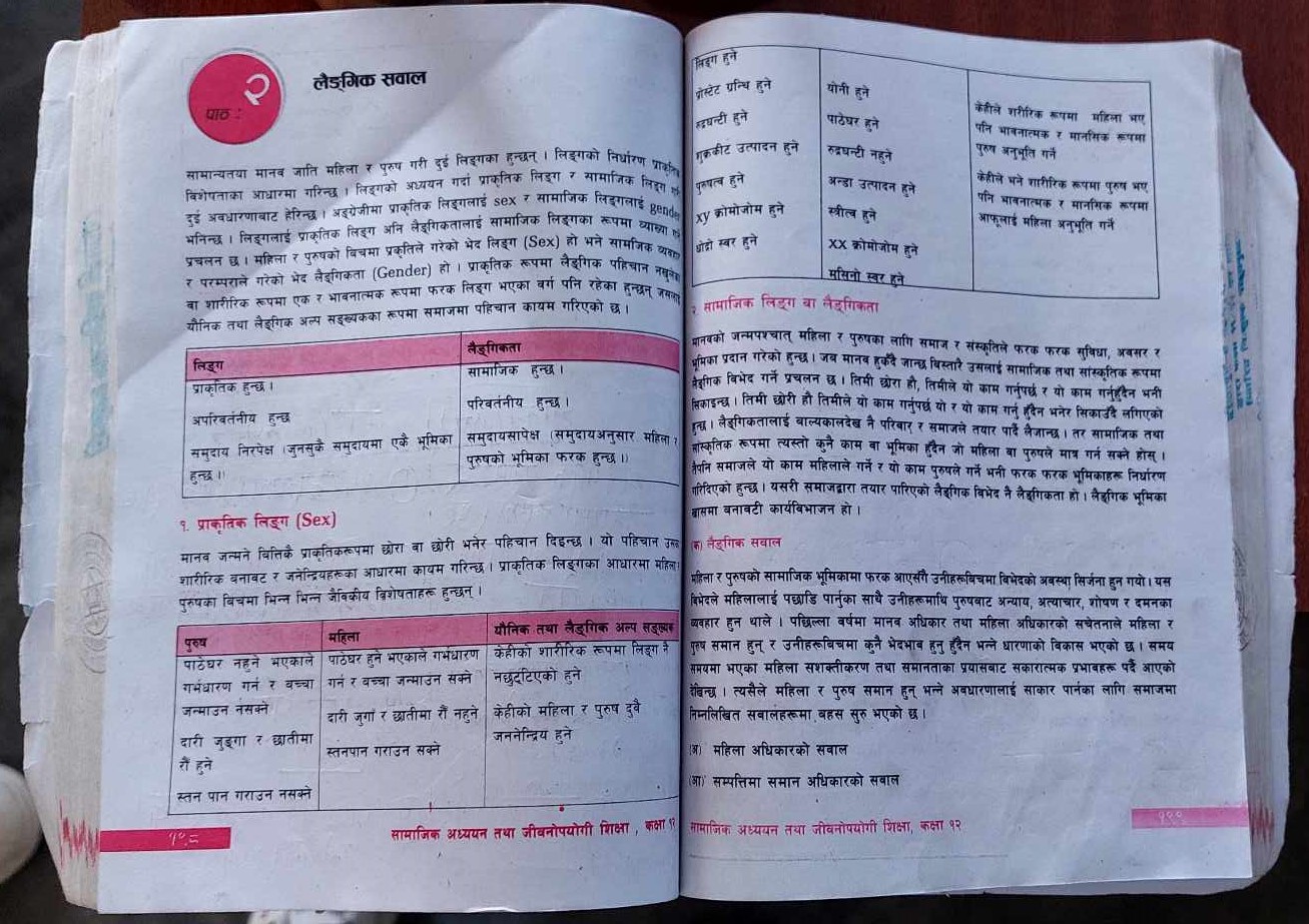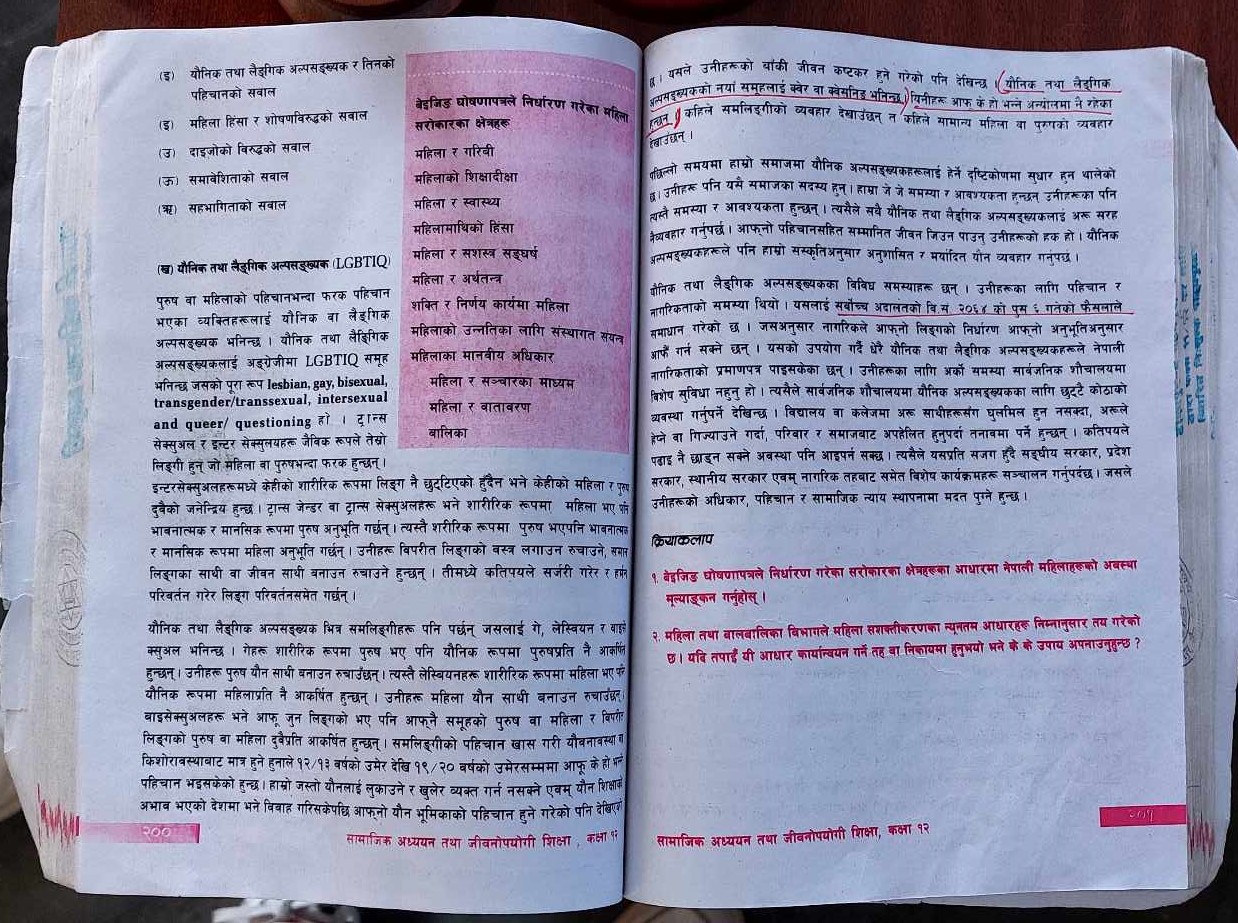 कक्षा ७ को स्वास्थ्य, शारीरिक शिक्षा र सिर्जनात्मक कला अन्तर्गतको ‘यौनिक परिचय, यौनिक पहिचान’ शिर्षकमा त्रुटी रहेको अभियन्ताहरुले बताउने गरेका छन् । पाठ्यक्रम निर्माता र पाठ्यपुस्तक लेखकहरुले बुझ्दै नबुझी राखेको भन्दै त्यसको आलोचना भएको छ ।