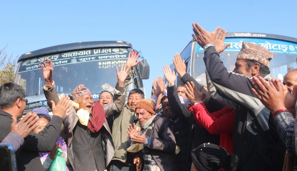 खोटाङ । दिक्तेल–खानीडाँडा–रेग्मीटार सडकमा बस सेवा सञ्चालनमा आएको छ । दिक्तेल रुपाकोट मझुवागढी नगरपालिका–४ खाल्लेका ९५ वर्षीय नन्दलाल ढुङ्गानाले सो सेवाको सोमबार शुभारम्भ गरे । सो अवसरमा उनीसँगै ८६ वर्षीय गङ्गाबहादुर कटवाल, ८० वर्षीय तेजबहादुर राईलगायतका खाल्लेका स्थानीय बासिन्दा केहीबेर धक खोलेर नाचगान गर्दै रमाएका थिए । जिल्लाको प्रमुख व्यापारिक केन्द्र दिक्तेल बजारबाट बस लिएर आहाले पुगेका चालक र सहचालकलाई खाल्लेवासीले अबिर र खादाले स्वागतसमेत थिए ।