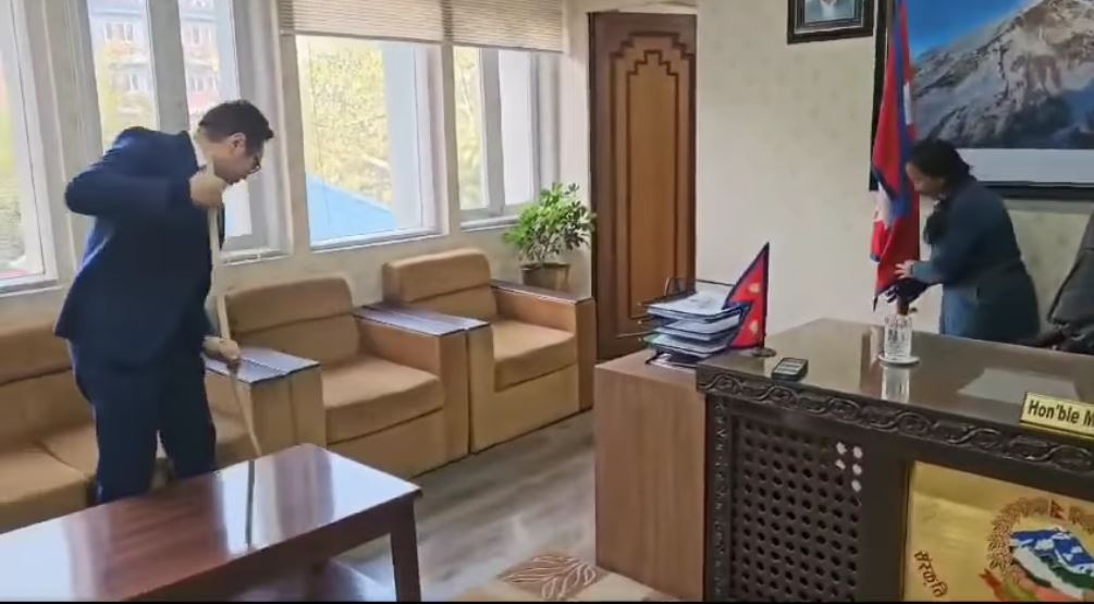 जब पर्यटनमन्त्री किँराती आफ्नो कार्यकक्षमा आफैँ झाडु लगाउन थाले (भिडियोसहित)