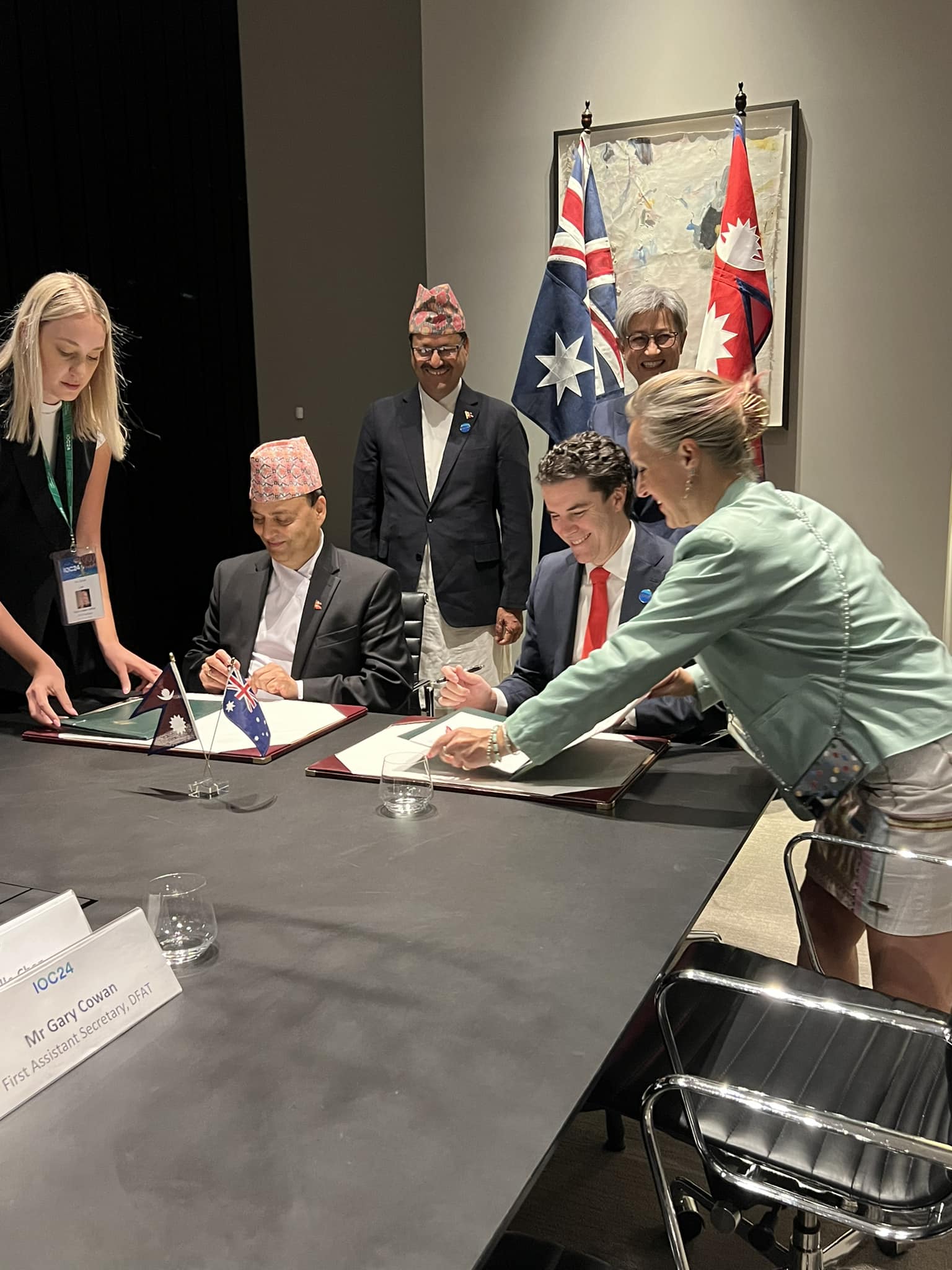 अष्ट्रेलियाका लागि नेपालका राजदूत कैलाशराज पोखरेल र अष्ट्रेलियाका सहायक विदेशमन्त्री टिम वाट्सबिच उक्त सम्झौतामा हस्ताक्षर भएको थियो ।परराष्ट्रमन्त्री साउद र अष्ट्रेलियाली समकक्षी पेनी वोङको उपस्थितिमा उक्त सम्झौतामा हस्ताक्षर भएको थियो ।