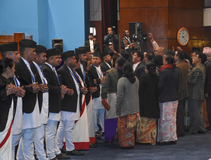 नीति तथा कार्यक्रमबारे संसदमा ओली बोल्दै गर्दा नेपाली कांग्रेसका सांसदहरुले विरोध गरे । प्रधानमन्त्रीओलीले प्रतिपक्षी दलका सांसदहरुको सोधेको प्रश्नको उत्तर दिने रोष्टममा पुग्ने वित्तिकै आक्रोस, कुण्ठा र निम्छरा अभिव्यक्तिहरुको वास्ता नगरेर प्रश्नहरुको जवाफ प्रस्तुत गर्छु भनेका थिए । त्यसपछि सांसद मिनबहादुर विश्वकर्माले उठेर विरोध जनाए । त्यसलगत्तै काँग्रेसका नेता मिनेन्द्र रिजालले प्रधानमन्त्रीको अभिव्यक्ति संसदीय मर्यादा विपरित भएको भन्दै रेकर्डबाट हटाउन आग्रह गरे ।