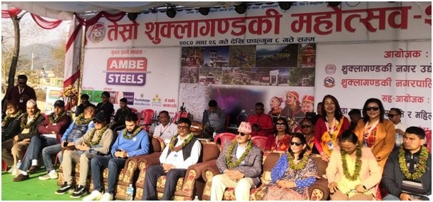 दमौली । तनहुँको शुक्लागण्डकी नगरपालिका–५ बेलचौतारामा जारी तेस्रो शुक्लागण्डकी महोत्सवमा स्थानीय उत्पादनलाई प्राथमिकता दिइएको छ । महोत्सवमा खादा र ब्याचको सट्टामा स्थानीय उत्पादनलाई प्राथमिकता दिइएको हो । यसअघिका महोत्सवमा नगर र जिल्ला बाहिरबाट माला खरिद गरी ल्याउने गरिएकामा यसपटक समिको पातबाट बनाइएको माला र स्थानीय फूल प्रयोगमा ल्याइएको हो । साथै महोत्सवमा खादा र ब्याच प्रयोग गरिएको छैन ।