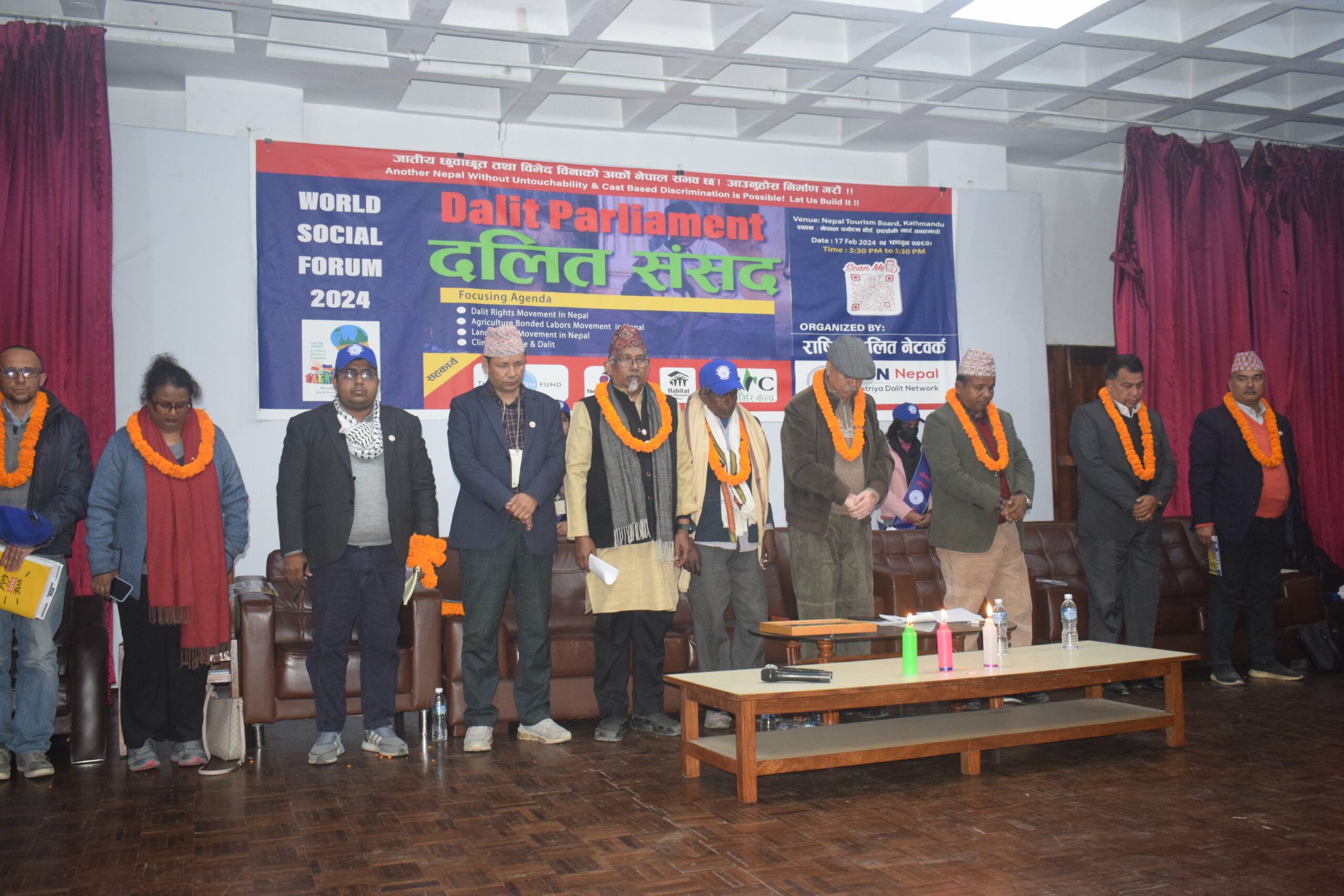 विश्व सामाजिक मञ्च नेपालमा भइरहेकै बेला नेपाली दलित आन्दोलनका अगुवाहरूले गणतन्त्र स्थापना हुनुभन्दा पहिल्यै सुदूरपश्चिमबाट अभ्यास आरम्भ भएको ‘दलित संसद्’ ब्यूँताएका छन् भने राज्यको सार्वभौम संसद्ले दलित समुदायको मानव अधिकार, मानव मर्यादा र आत्मसम्मानका लागि गर्न नसकेका विषयहरूमा दलित संसद्मा छलफल र बहस गरेर कानूनहरु बनाउने चुनौती समेत दिएका छन् ।