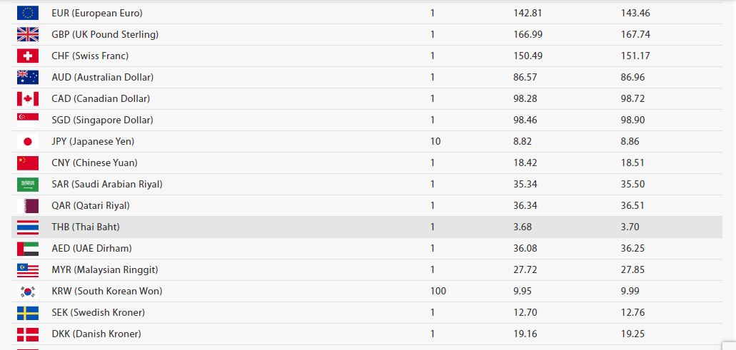 यस्तै, युरो एकको खरिद दर १४२ रुपैयाँ ८१ पैसा र बिक्री दर १४३ रुपैयाँ ४६ पैसा रहेको छ ।बेलायती पाउण्ड एकको खरिद दर १६६ रुपैयाँ ९९ पैसा र बिक्री दर १६७ रुपैयाँ ७४ पैसा रहेको छ । कतारी रियालको मूल्य एकको खरिद दर ३६ रुपैयाँ ३४ पैसा र बिक्री दर ३६ रुपैयाँ ५१ पैसा रहेको राष्ट्र बैंकले जनाएको छ ।