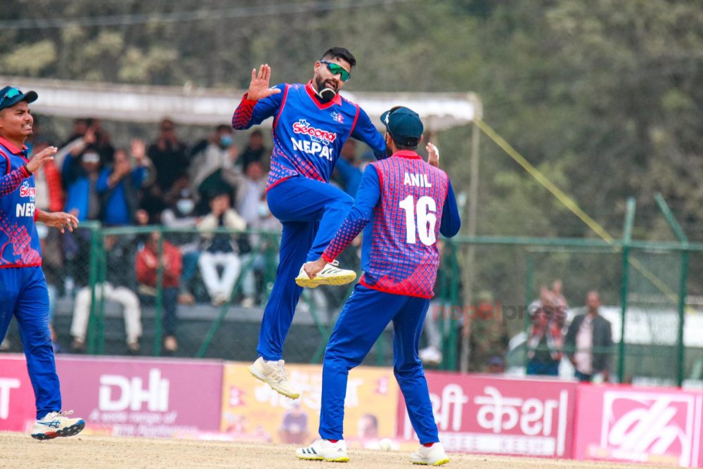 १७.३ ओभरमा दीपेन्द्रसिंह ऐरीले जान फ्रानलिङ्कलाई आउट गरेका हुन् ।
