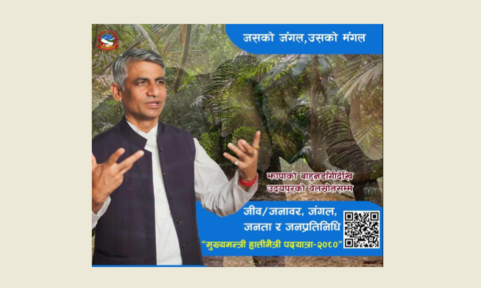 ‘प्रकृति संरक्षण र पर्यटन प्रवर्द्धनका लागि हात्ती प्रभावित क्षेत्रमा पदयात्रा–२०८०’ भन्ने नारासाथ सुरु हुने पदयात्रामा संरक्षणकर्मी, हात्ती विज्ञ, नागरिक समाज लगायत सरोकारवाला निकायका प्रतिनिधिको सहभागिता हुने जनाइएको छ ।