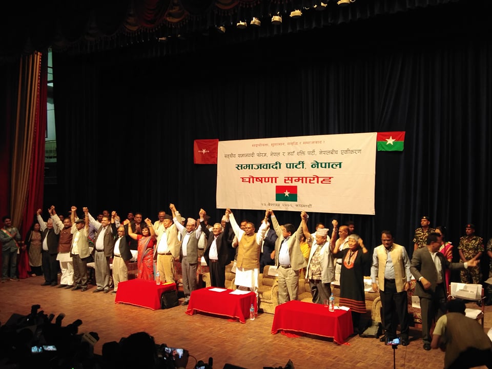 उपेन्द्र यादव नेतृत्वको तत्कालीन संघीय समाजवादी फोरम नेपाल र बाबुराम भट्टराईका नयाँशक्ति पार्टीबीच वैशाख २३ गते पार्टी एकीकरण भएको थियो । पार्टी एकीकरणपछि पार्टीको नाम समाजवादी पार्टी नेपाल राखिएको थियो ।