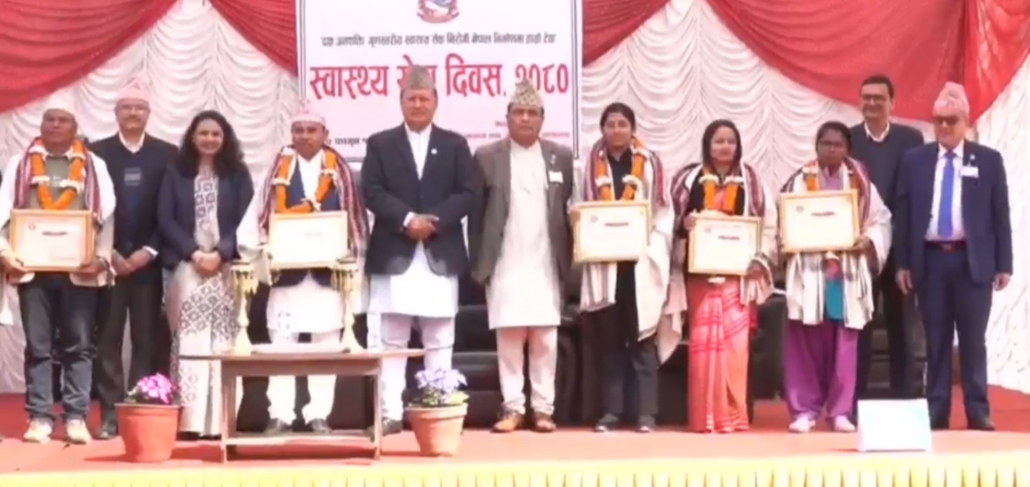 स्वास्थ्य सेवा पुरस्कारबाट सम्मानित हुने चारै जनालाई कदरपत्र सहित ५० हजार रुपैयाँको पुरस्कार राशीले स्वास्थ्यमन्त्री मोहनबहादुर बस्नेत, स्वास्थ्य सचिवलगायतले माला र खादा लगायर सम्मान गरे ।