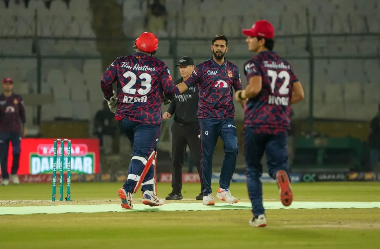यस्तै, आघा सलमानले १५ बलमा २५ रनको नआउट पारि खेल्दा कप्तान सदाव खानले पनि नटआउट १० रन बनाएर पछि सहजै जित निकाले । कराचीका हसन अलि, तबरेज सम्सी र मोहमद नवाजले एक एक विकेट लिएका थिए ।