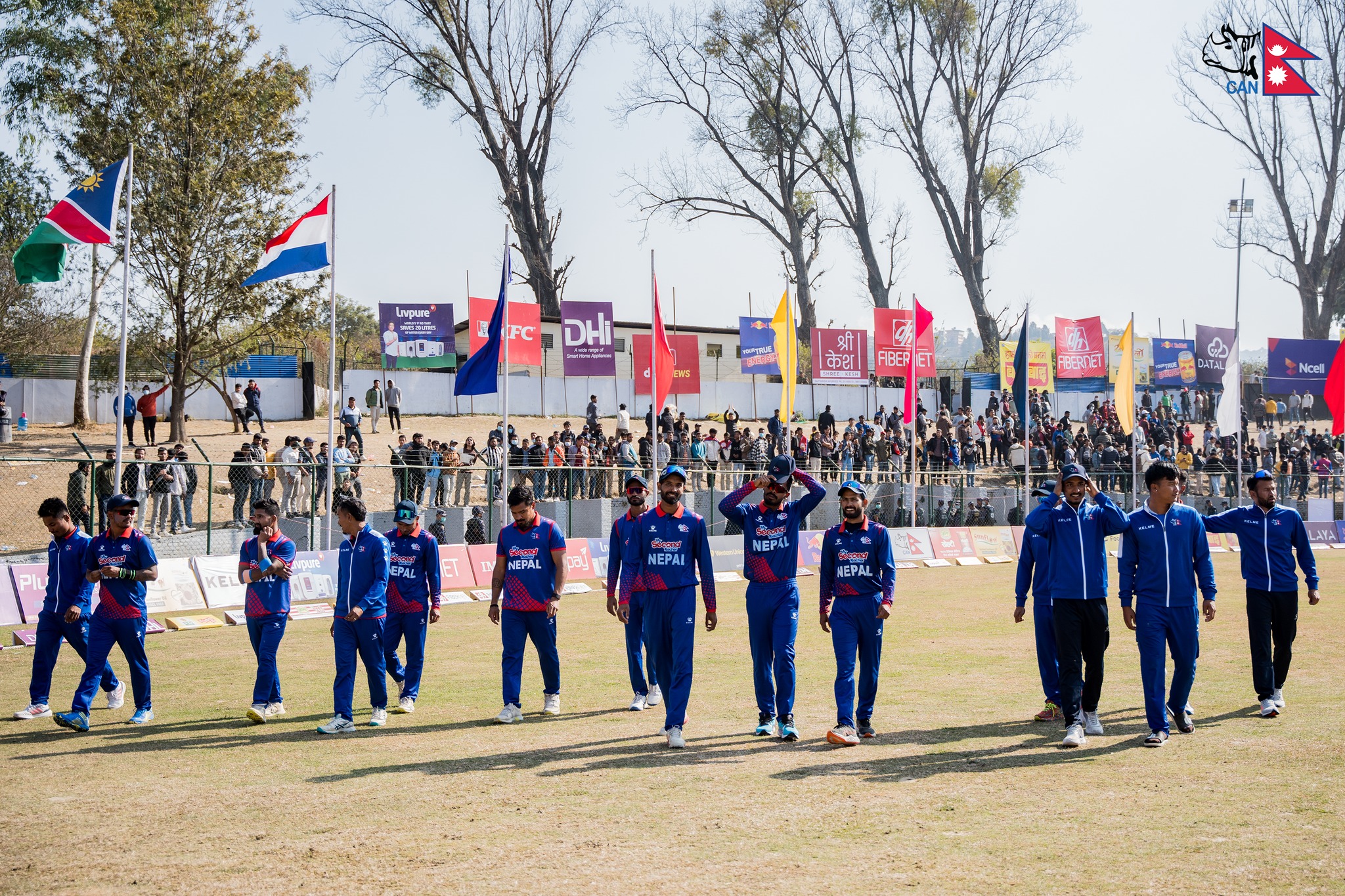 नामिबिया र नेदरल्याण्ड्ससँगको आफ्नो पहिलो खेलमा पराजित भएको नेपाल फाइनल खेल्ने सम्भावना कायमै राख्न आज नामिबियालाई पराजित गर्नु पर्ने छ । नेपाल र नामिबियाबीचको खेल विहान साढे ११ बजेपछि त्रिवि क्रिकेट मैदान कीर्तिपुरमा सुरुहुने छ ।