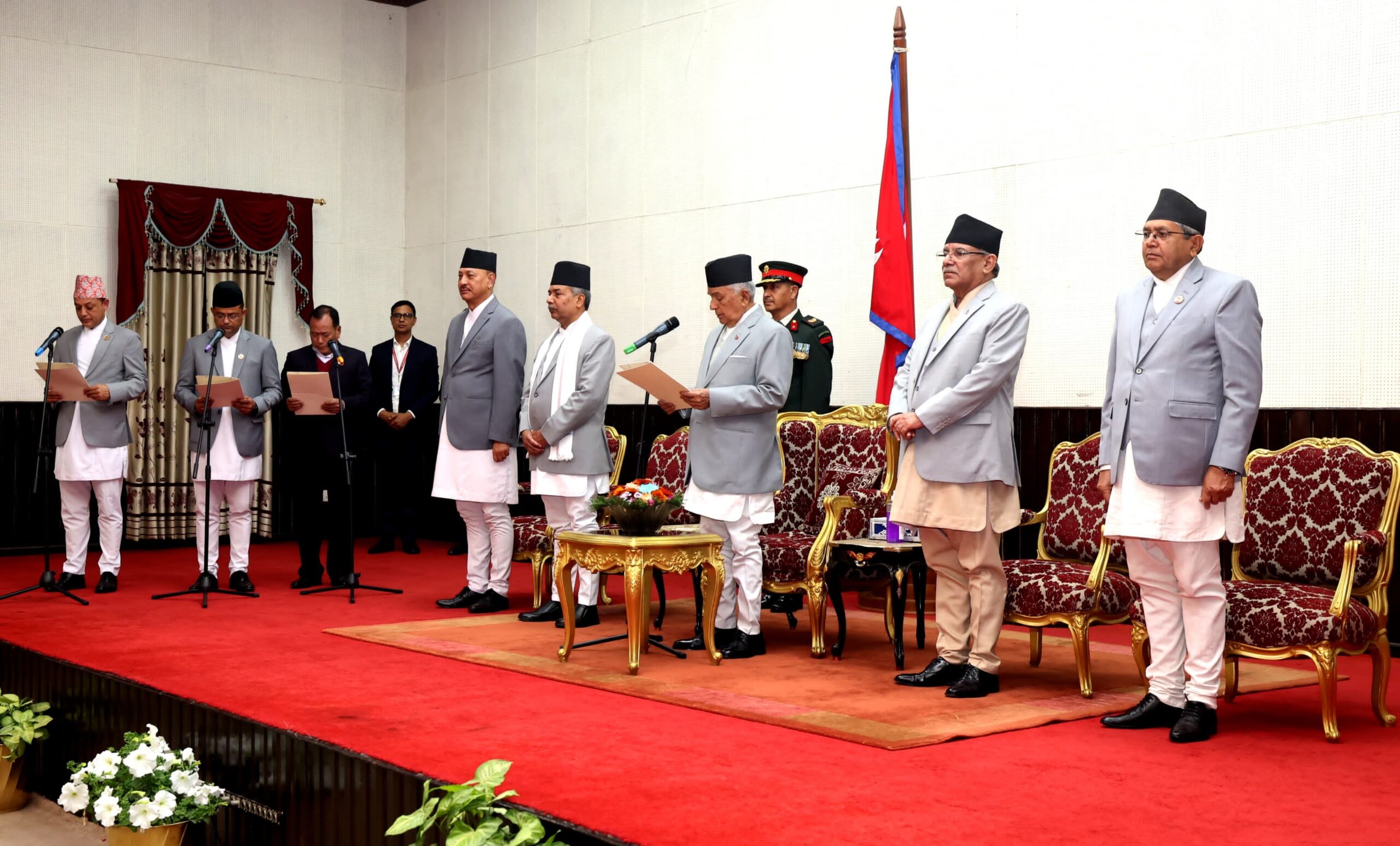 सोमबार राष्ट्रपति कार्यालय शितलनिवासमा बिना विभागीय मन्त्रीहरू माओवादी केन्द्रका हितबहादुर तामाङ, एमालेका पदम गिरी र रास्वपाका डोलप्रसाद अर्यालले शपथ लिएका हुन् ।