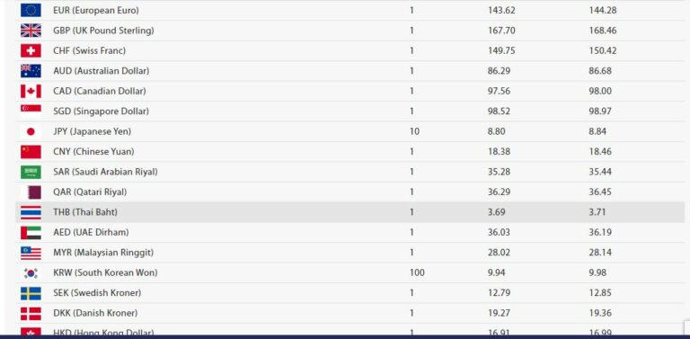यूरो एकको खरिद दर १४३ रुपैयाँ ६२ पैसा र बिक्री दर १४४ रुपैयाँ २८ पैसा तोकिएको छ ।