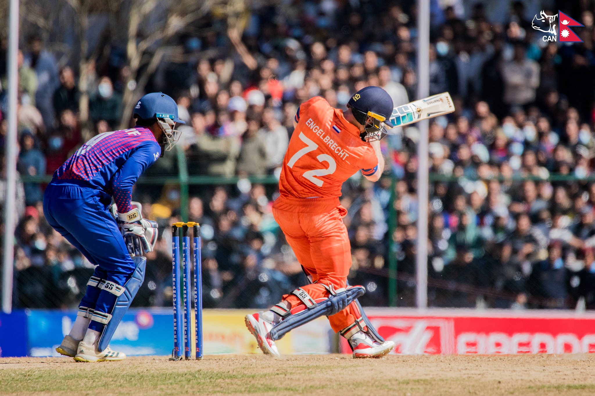 अठारौं ओभरको पहिलो बलमै कुशल मल्लले अर्को महत्वपूर्ण विकेटका रुपमा एङ्गलव्रिचलाई ४८ रनमा आउट गराए । उनैले दोस्रो बलमै तेजा निदामन्दरुलाई २ रनमै सन्दिप जोराको हाटबाट क्याच आउट गराए ।
