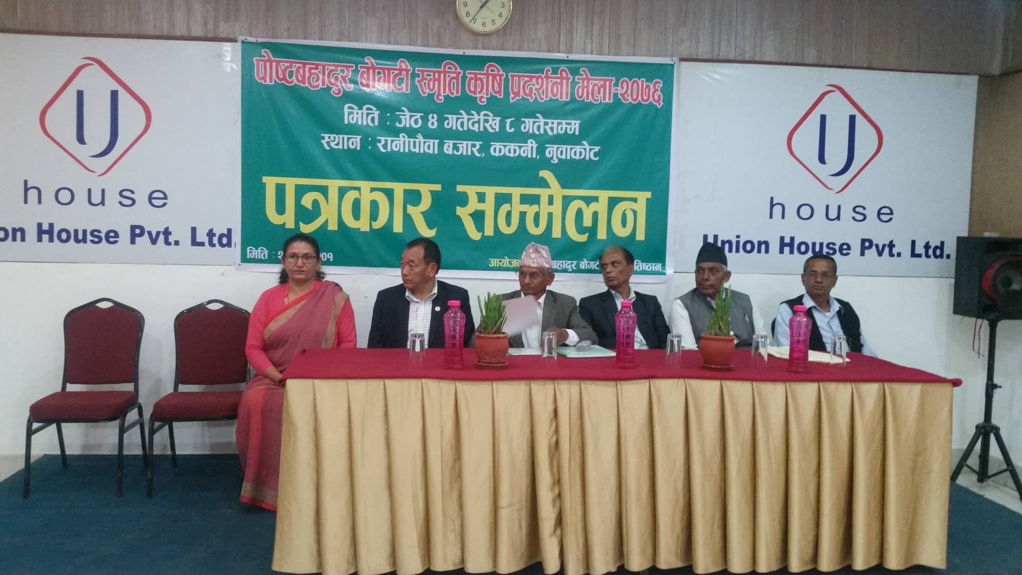 पोष्टबहादुर बोगटी स्मृति प्रतिष्ठानले आज पत्रकार सम्मेलनको आयोजना गरी नुवाकोट, रसुवा, काठमाडौँ र धादिङका स्थानीहरुले उत्पादन गरेका कृषि सामग्री प्रदर्शनीमा राखिने जानकारी गराएको छ ।
