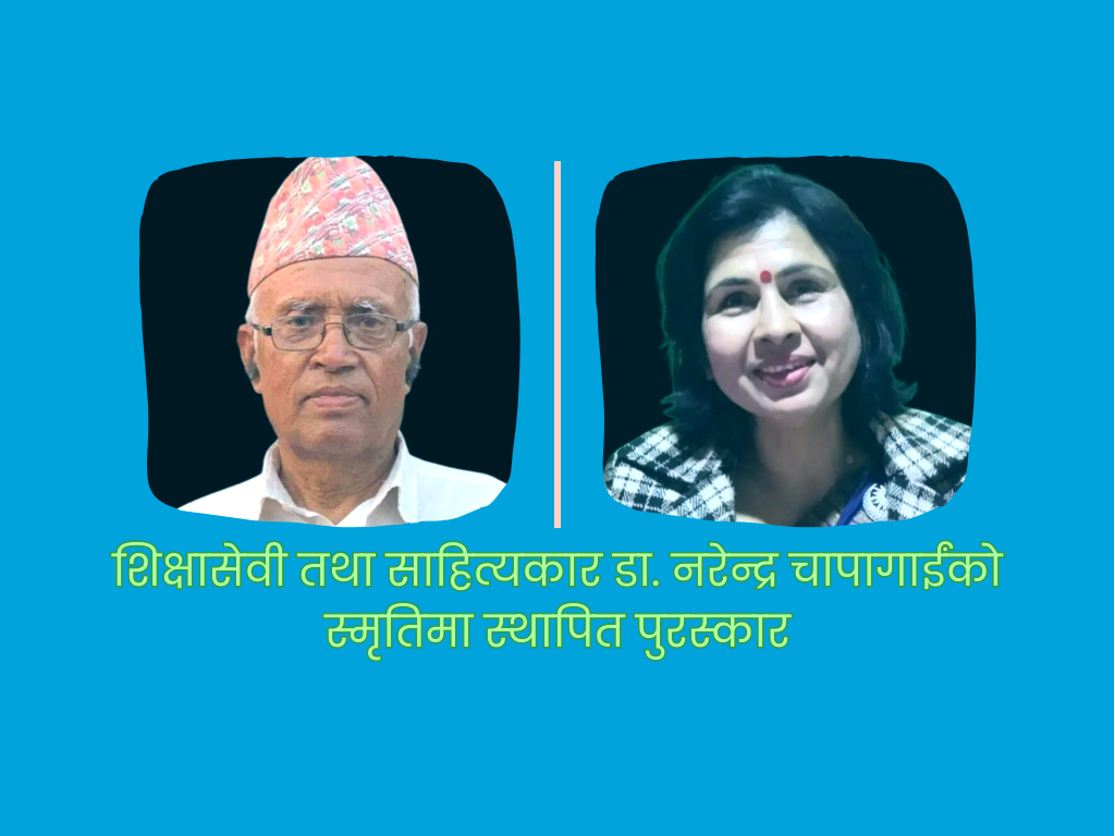विराटनगर । शिक्षासेवी तथा साहित्यकार डा.नरेन्द्र चापागाईंको सम्झना एवं सम्मानमा स्थापित नरेन्द्र चापागाईं भाषा साहित्य पुरस्कार यस वर्षका लागि समालोचक दधिराज सुवेदीलाई दिइने भएको छ ।