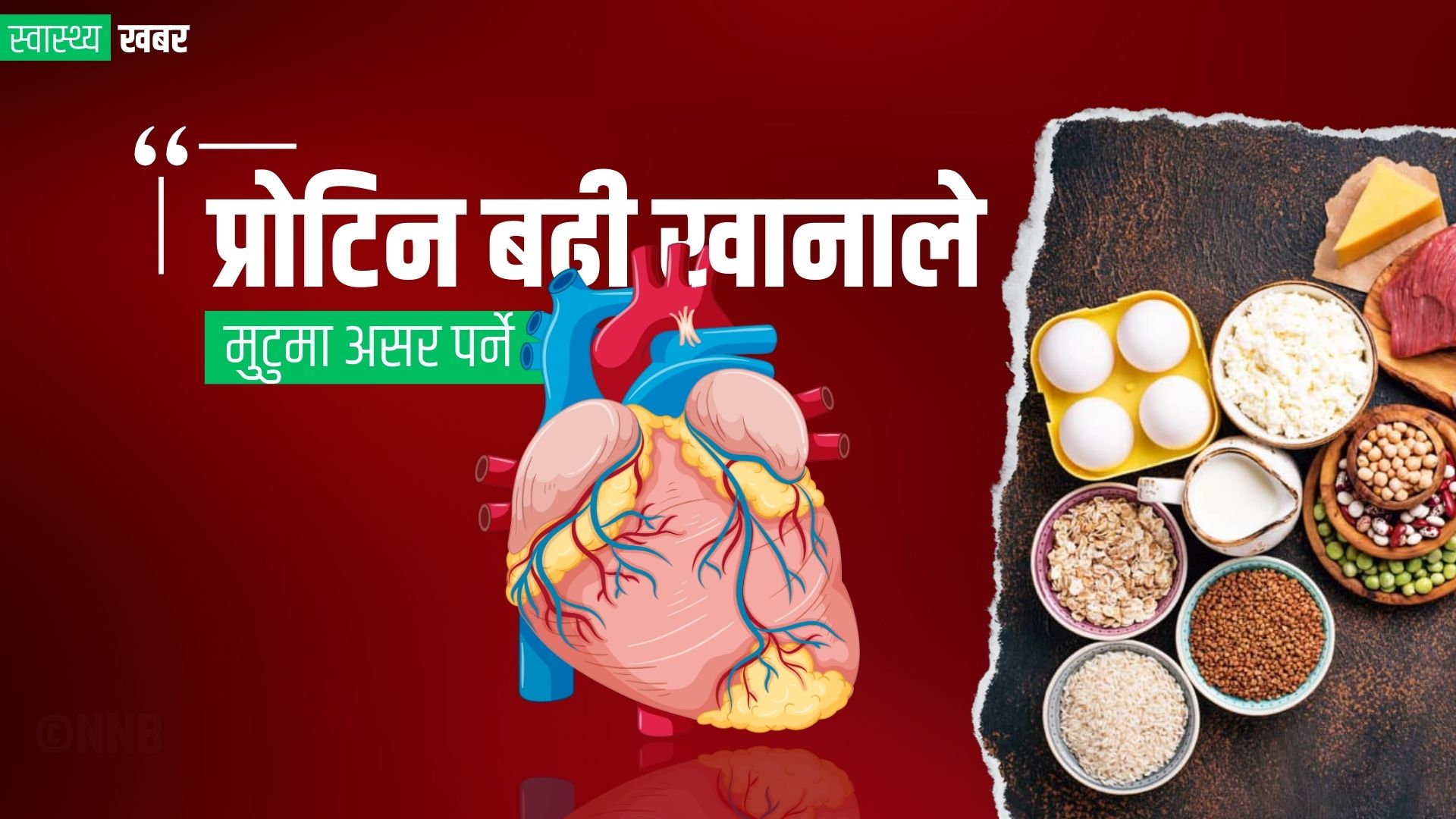 मेडिकल जर्नल नेचर मेटाबोलिज्ममा प्रकाशित एक अध्ययन प्रतिवेदन अनुसार दैनिक क्यालोरीको २२ प्रतिशतभन्दा बढी प्रोटिनबाट लिइयो भने यसले प्रतिरक्षा कोषिकाहरूलाई सक्रिय बनाउँछ र शरीरमा एमिनो एसिड बढाउन सक्छ । यसले धमनीहरूमा अवरोध उत्पन्न गर्छ, जसले हृदयघात हुने खतरा रहन्छ ।प्रोटिन बढी भएको खानाले मानिसको जीवनलाई कसरी जोखिममा पार्छ भन्ने केही तथ्यहरु छन् ।