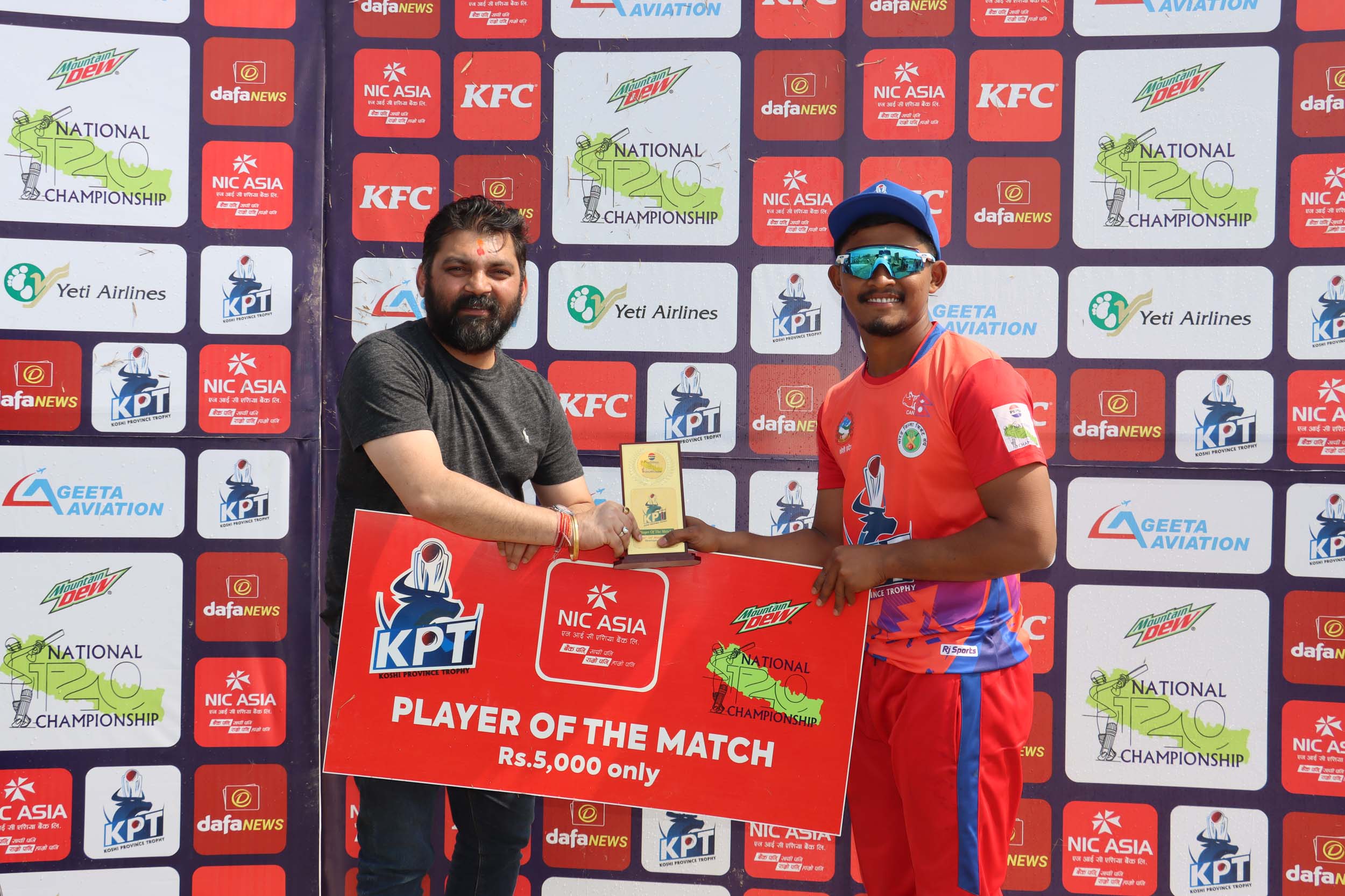 विराटनगरको बैजनाथपुर क्रिकेट रंगशालामा शनिबार भएको पहिलो खेलमा कर्णाली प्रदेशले विभागीय टोली एपिएफ क्लवलाई ५१ रनले पराजित गरेको छ । जितसँगै कर्णाली समूह ए मा ४ खेलमा २ मा जित र २ मा पराजित हुँदै ४ अंकको साथ शीर्ष स्थानमा उक्लिएको छ ।