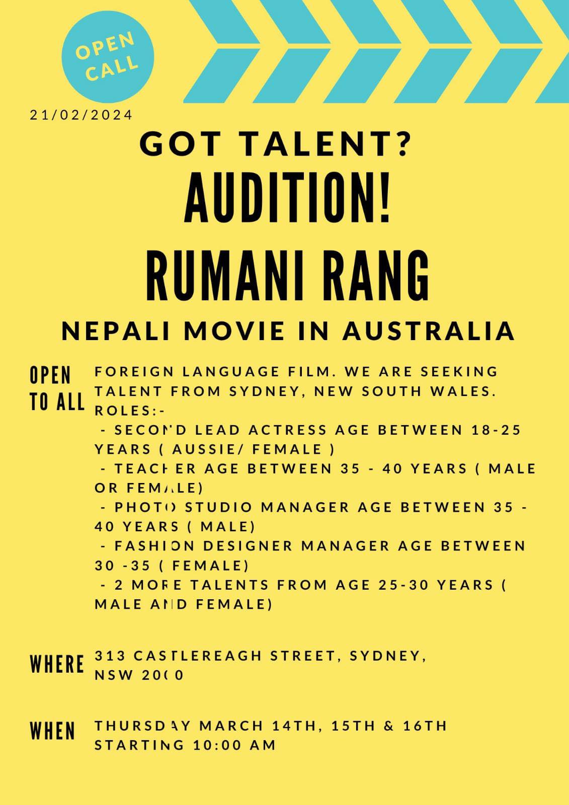 ‘रुमानी रङ’का लागि अष्ट्रेलियामा अडिसन