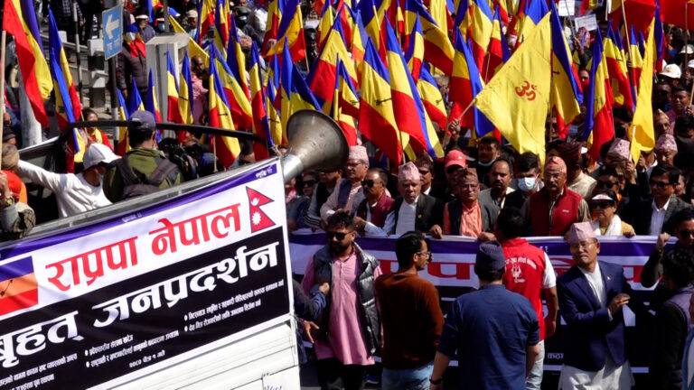 काठमाडौं । राष्ट्रिय प्रजातन्त्र पार्टी नेपालले विभिन्न मागसहित काठमाडौंमा दबाबमूलक प्रदर्शन गरेको छ । पार्टी अध्यक्ष कमल थापाको नेतृत्वमा हिन्दूराष्ट्र र राजसंस्था पुनःस्थापना, प्रदेश संरचना खारेज, भ्रष्टाचारको अन्त्यलगायतका मागसहित काठमाडौंमा दबाबमूलक कार्यक्रम गरेको हो ।