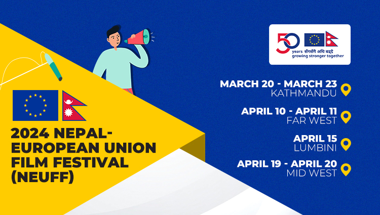 काठमाडौं । द डेलिगेसन अफ द युरोपियन युनियन टु नेपाल (नेपालका लागि युरोपियन युनियनको डेलिगेशन)को आयोजनामा काठमाडौंमा यही चैत ७ गतेदेखि चैत १० गतेसम्म १३ औं संस्करणको ‘नेपाल–युरोपियन युनियन फिल्म फेस्टिभल २०२४’ हुने भएको छ ।