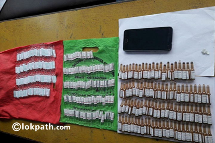 यस्तै नेपालगञ्ज–१८ भुजइगाउँका किशोरकुमार धोवीलाई चार ट्याब्लेट नाइट्रोजन, १० क्याप्सुल स्पास्मो र एक बोत्तल अल्टोरेक्ससहित जमुनाहा नाकाबाट नियन्त्रणमा लिइएको छ ।