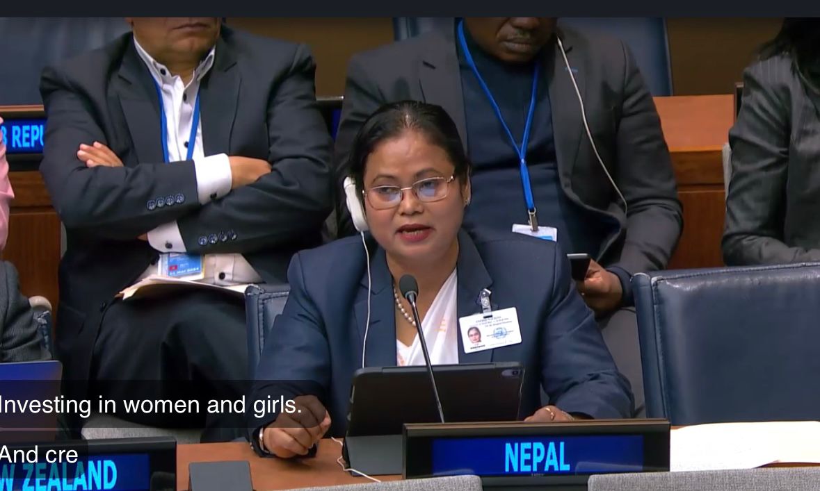 अमेरिकाको न्यूयोर्कमा जारी युएन वुमनको ‘द कमिसन अन दि स्टाटस अफ वुमन’ सम्मेलनमा नेपालको प्रतिनिधित्व गर्दै मन्त्री चौधरीले महिलाले विश्वको आधा जनसंख्याको आधा सम्भावना बोकेको भएतापनि विश्वव्यापी लैङ्गिक समानता हासिल गर्न चुनौतिहरु रहेको बताए ।