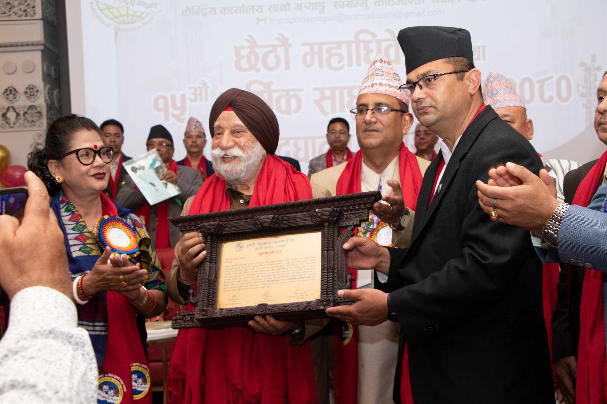 काठमाडौं । ढुवानी व्यवसायी महासंघ नेपालको छैटौं महाधिवेशन तथा १५ औं वार्षिक साधारणसभामा नेपालमा ढुवानी व्यवसायको जग बसाउने सरदार प्रितम सिंहलाई ‘ट्रान्सपोर्ट किङ्ग’कोरुपमा सम्मान गरिएको छ ।