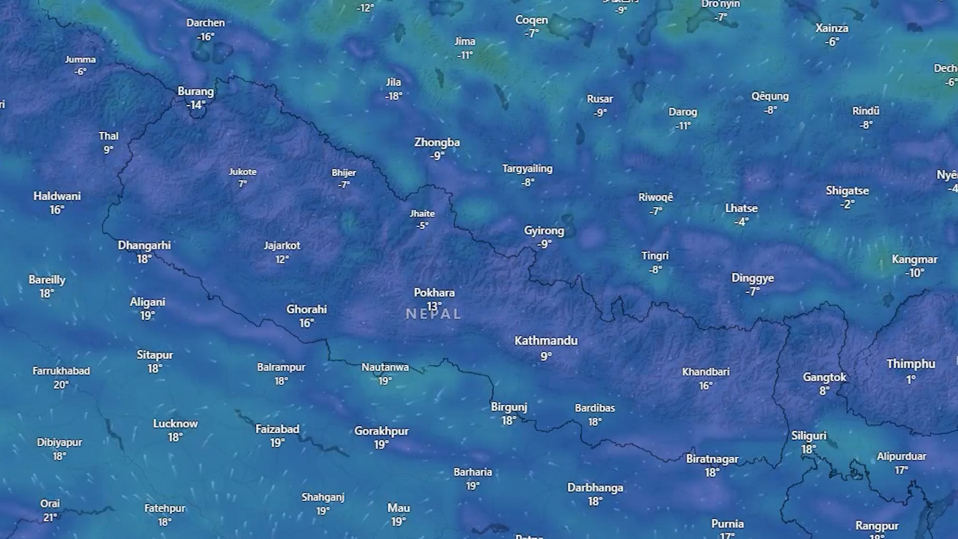 काठमाडौं । जल तथा मौसम विज्ञान विभाग, मौसम पूर्वानुमान महाशाखाले हाल नेपालमा पश्चिमी न्यून चापीय प्रणाली तथा भारतको झारखण्ड आसपास रहेको न्यून चापीय प्रणालीको प्रभाव रहेको जनाएको छ ।