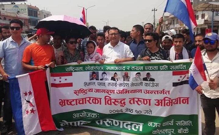 शुक्रवार बाँकेको कोहलपुरमा तरुण दलले भ्रष्टाचारविरुद्ध भण्डाफोर अभियान कार्यक्रम गरेको हो ।