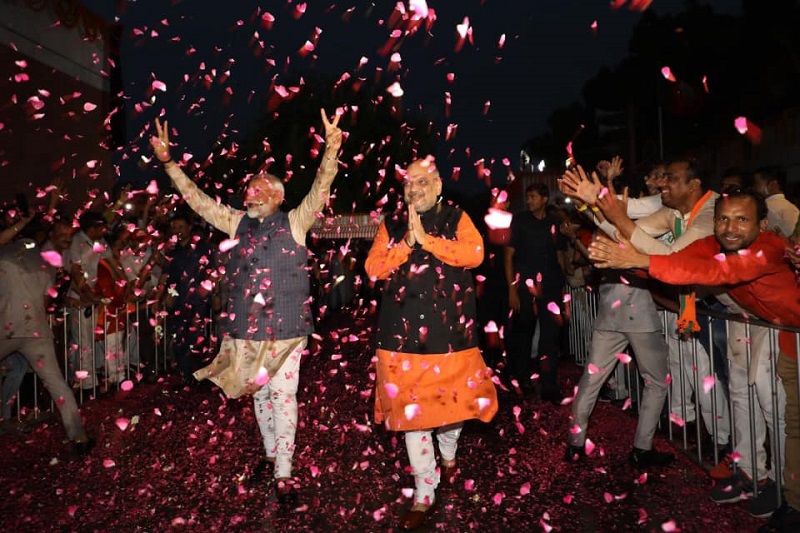 भाजपा नेतृत्वको संयुक्त गठबन्धन (एनडीए)ले भने ३५२ सिट हाँसिल गरेको आयोगका अधिकारीहरुले जनाएका छन् । भाजपाको राष्ट्रवादी तथा हिन्दुधर्मवादी नाराले भारतीय नागरिकबीच लोकप्रियता पाएकोले उसले एकछत्र जीत निकाल्न सफल भएको कतिपय भारतीय सञ्चारमाध्यमहरूले उल्लेख गरेका छन् ।