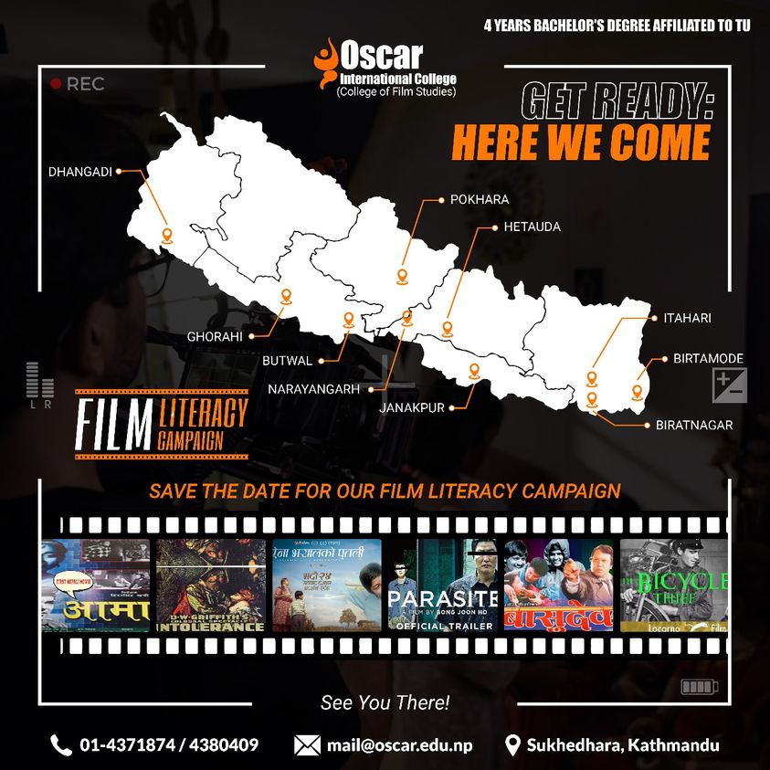 काठमाडौं । दुई दशकदेखि नेपालमा फिल्म शिक्षा प्रदान गरिरहेको अस्कर कलेजले देशव्यापी ‘सिनेमा साक्षरता अभियान’ सञ्चालन गर्ने भएको छ ।