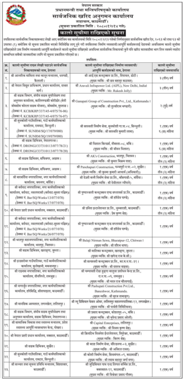 सार्वजनिक खरिद अनुगमनको कार्यालयले एक सूचना जारी गर्दै विभिन्न आयोजना समयमै पूरा नगर्ने कम्पनीलाई कालो सूचीमा राखेको हो ।