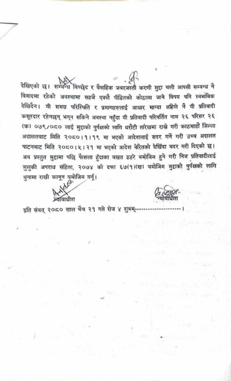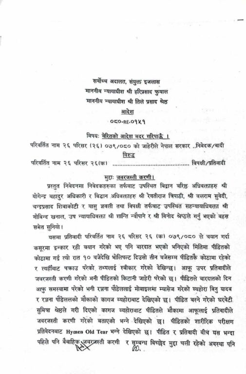 आरतीले दायर गरेको रिटमा जिल्ला अदालत काठमाडौंले गत वैशाख १९ गते धरौटीमा रिहा गर्न आदेश दिएको थियो । त्यस्तै सोही फैसलालाई कार्यान्वयन गर्दै उच्च अदालत पाटनले पनि २०८० भदौ २१ मा पुुर्पक्षका लागि छाड्न आदेश दिएको थियो । जिल्ला र उच्च अदालतको आदेशको विरुद्ध आरती सर्वोच्च गएकी हुन् ।