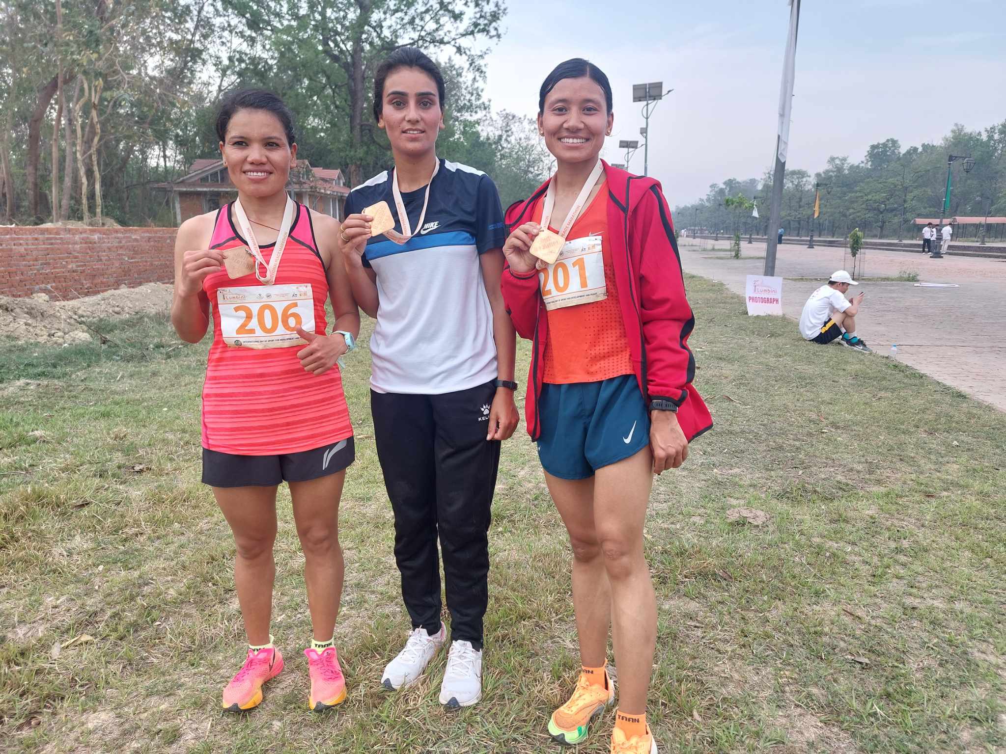 नेपाली सेनाकी पुर्ण राज्य लक्ष्मी न्यौपानेले सो दुरि १ घन्टा १९ मिनेट २१ सेकेण्डमा पूरा गरि दोस्रो स्थान बनाउँदा एपिएफकि पुस्पा भण्डारीले १ घन्टा २५ मिनेट १४ सेकेन्डमा निर्धारित दूरी पार गरी तेश्रो भइन ।
