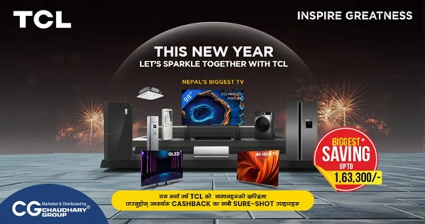 काठमाडौं । चर्चित होम अप्लाएन्स ब्रान्ड टिसीएलले यसपालिको नयाँ वर्ष लक्षित गर्दै टिसीएलको ‘दिश न्यु इयर लेट्स स्पार्कल टूगेदर विथ टिसीएल’ नामक योजना सार्वजनिक गरेको छ । यस योजना अन्तर्गत ग्राहकहरूले टिसीएलका विभिन्न होम एप्लाएन्सको खरिदमा आकर्षक क्यासब्याक साथै विशेष उपहारहरू प्राप्त गर्न सक्ने कम्पनीले जनाएको छ ।