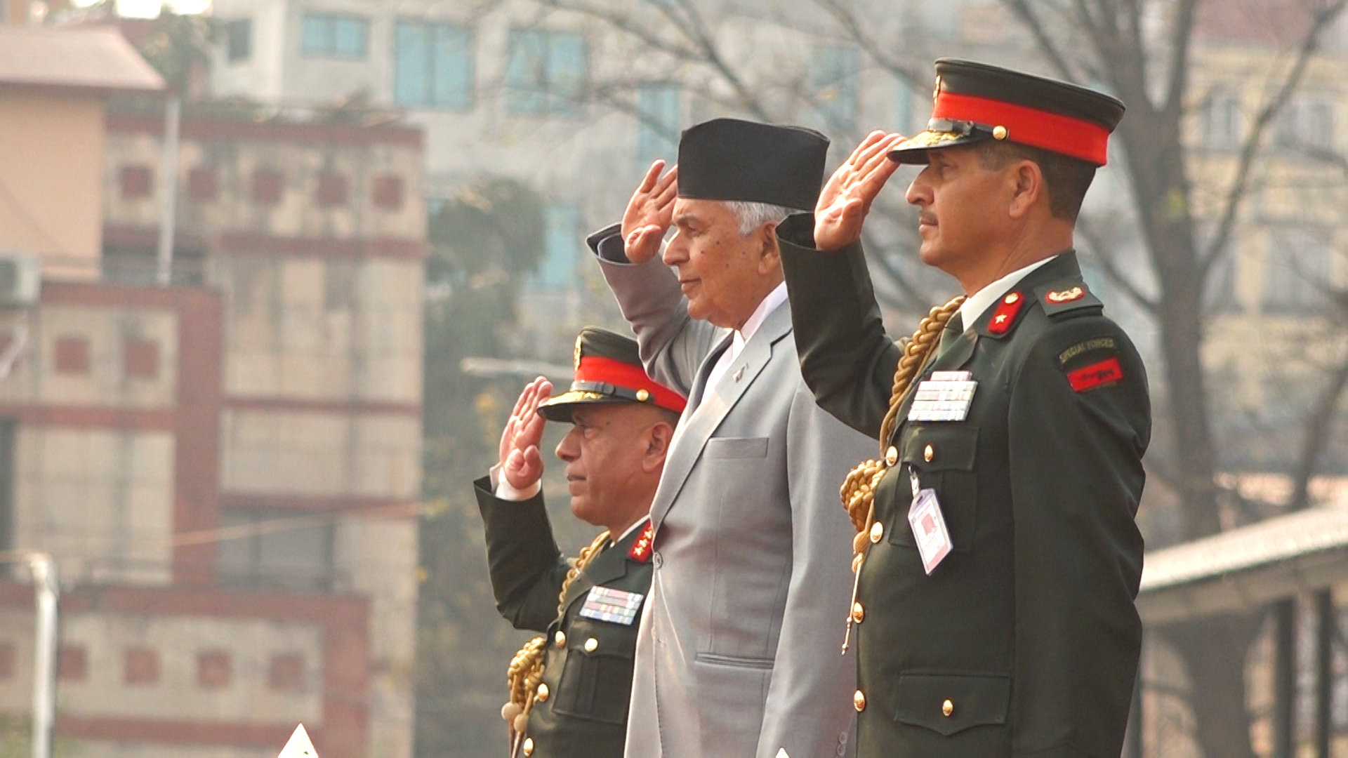 काठमाडौं । राष्ट्रपति रामचन्द्र पौडेल नेपाली सेनाद्वारा सोमबार टुँडिखेलमा आयोजित घोडेजात्रा समारोहमा सहभागी भएका छन् । समारोहमा सेनाद्वारा प्रदर्शन गरिएको अश्वकलाको पनि उनले अवलोकन गरे ।