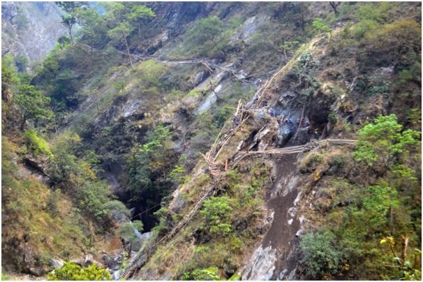 गोरखाको रुन्चेतगाउँ पुग्न भिर खोपेर झोलुङ्गे पुल बनाइँदै