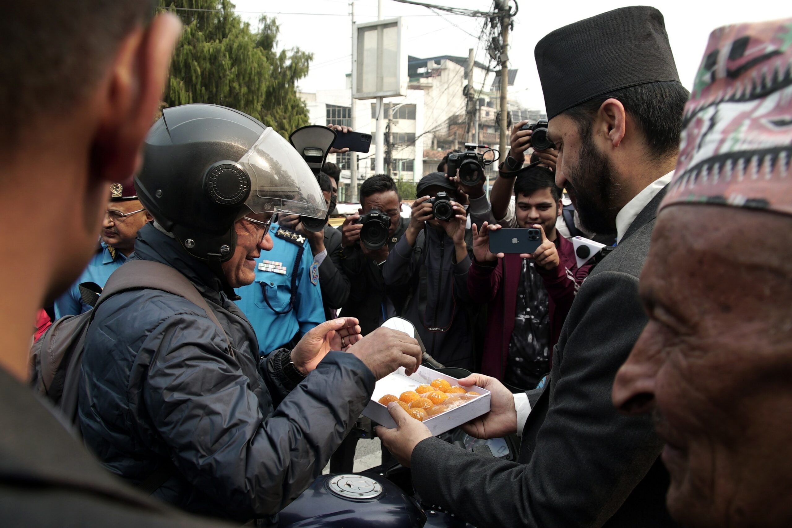 शनिबार विहान थापाथलीको सडकमा उनले प्रहरी कर्मचारी र सर्वसाधारणसँग नयाँ वर्षको खुशियाली साटासाट गर्ने क्रममा मिठाइ बाँडेका हुन् । पैदल हिँडेका र सवारी साधनमा यात्रा गरिरहेकाहरुलाई उनले मिठाइ दिँदै नयाँ वर्षको अवसरमा शुभकामना आदानप्रदान गरे ।